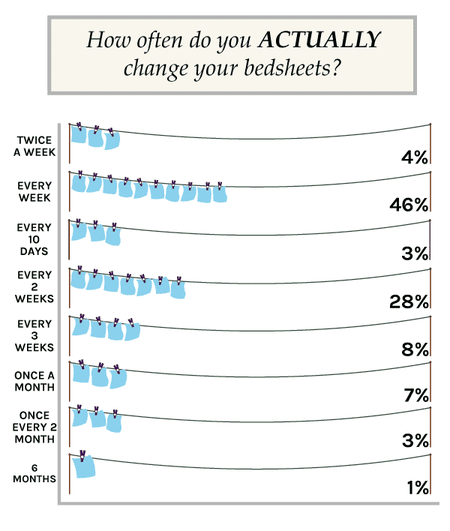Your response to our Instagram poll left no doubt - you intend to change your bed sheets every week! So said 62.5% of respondents. Read on to find out how many of you actually follow through on these good intentions...
