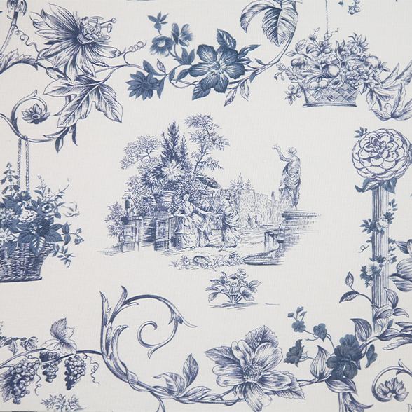 And so, my Normandy musings brought inspiration aplenty, from florals and stripes to ginghams, ruffles and silks, but most notably a toile. On my return I got to the drawing board. Together with our talented in-house illustrator Rachelle and graphics team, we created a toile that is an exemplification and celebration of female friendship and freedom. Named Toile Liberté, the design depicts women dancing and drinking wine, together with a little French bulldog and a camellia flower inspired by the Chanel camellia, a nod to Coco Chanel’s contribution to the elevation of women in 20th century society. A carefully considered design that will age with grace and elegance – just what we want for ourselves.