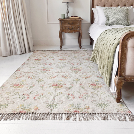 The Windsor Rug has quickly become a beloved favourite among our customers. Crafted from soft cotton, it features a graceful and timeless design brought to life through a delicate, spring-inspired colour palette. Evoking a sense of romantic, vintage charm, it effortlessly enhances any space. The Windsor Rug boasts a plush, inviting pile that your toes will sink into, making it the perfect addition beside your bed. Printed in the same signature pattern as our Windsor Bed and the wider Windsor collection, this enduring design continues to captivate and win hearts time and again.