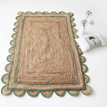 Our Sundar Scallop Green Jute Rug & Sundar Scallop Blue Jute Runner